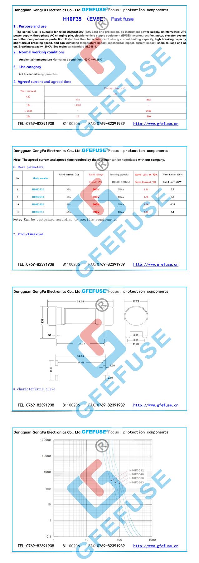 H10F35(32A-63A)500Vac/dc快速熔斷器